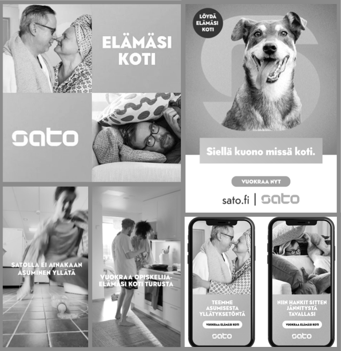 SATO - ihanan yllätyksetön elämäsi koti. Konsepti, jonka pohjalta oli hyvä loikata mukaan rakentamaan monikanavaista markkinointiviestintää. Grundlagella oli perehdytty tutkimusdataan, tavoitteisiin, kuluttajakäyttäytymiseen ja kilpailijakenttään tarkalla silmällä. Ja keskitytty toimialalle tyypillinen kotoilun sijaan SATOn luomiin asumiseen puitteisiin. Kodit kun ovat aina erilaisia ja asukkaidensa näköisiä. Mutta asumisen rutiinit puolestaan ovat SATOn yli 80 vuoden kokemuksen myötä aina aika lailla ennalta arvattavia. Suorastaan tylsiä. Ja hyvä niin! Asumisessa yllätykset harvoin ilahduttavat. Mainittakoon nyt vaikka putkirikko tai käsistä karannut lämmityslasku. Näin brändien heikkoutena pidetty tylsyys oli kääntynyt vahvuudeksi.