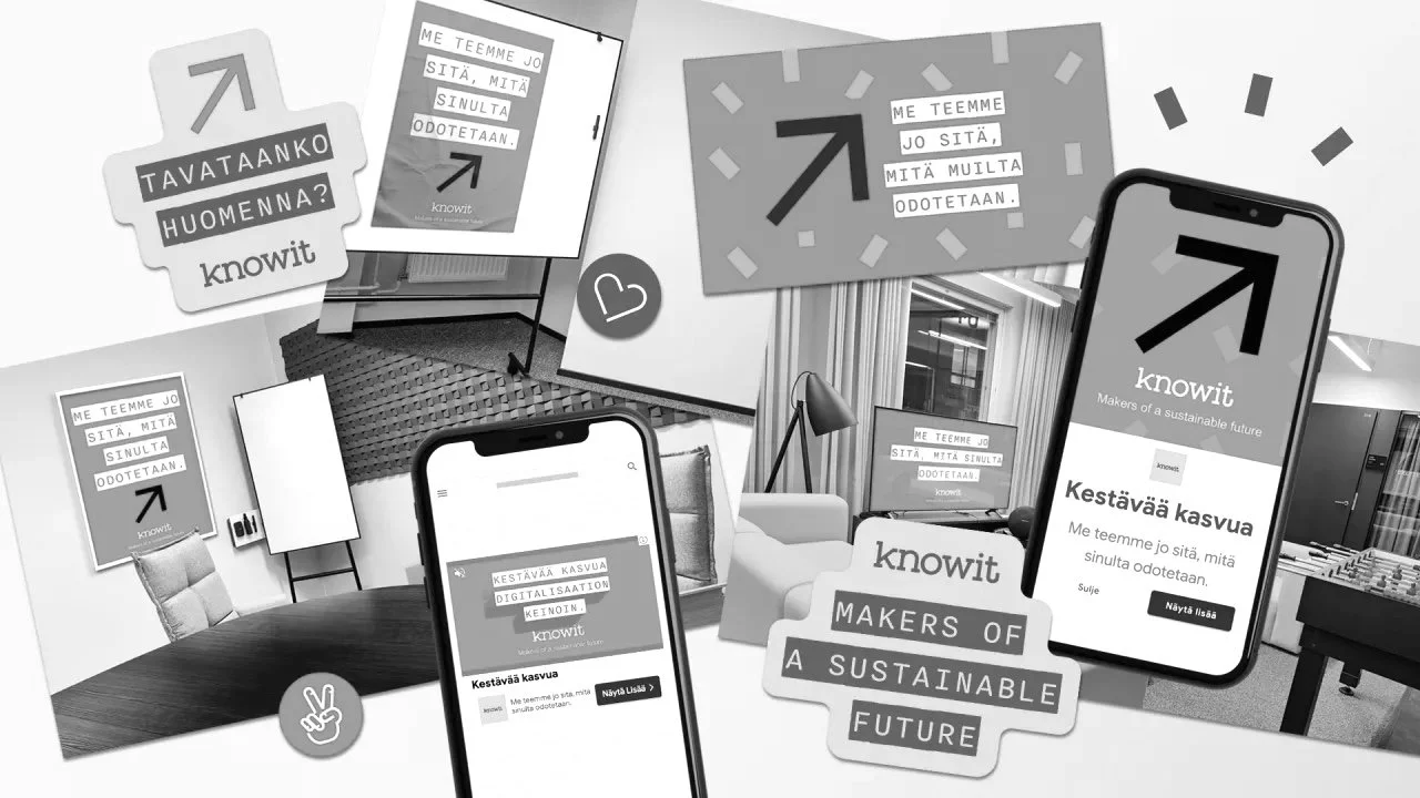 Ja tekoja Knowit suunnittelee ja toteuttaa jo nyt. Siksi kampanjaviesti "Me teemme jo sitä, mitä sinulta odotetaan" on lupaus jakaa painoa asiakkaiden harteilta ja tuottaa konkreettisia ratkaisuja, jotka tukevat kestävää kehitystä. Väite on rehellisen suora, jopa haastava, mutta pitää täysin paikkansa. Ja sehän vaan innostaa lunastamaan yrityksen brändilupauksen "Makers of a sustainable future" entistä tarmokkaammin.